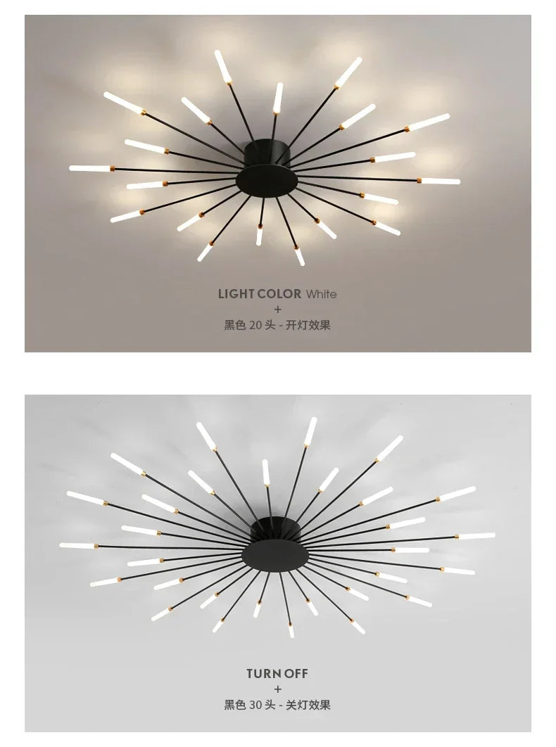 • Contemporary Design: The combination of gold and black creates a striking fireworks chandelier effect.